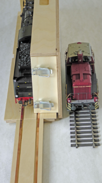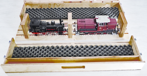 (!! Zwischen Lok und Schaumstoff bitte unbedingt Baumwolltuch oder Ähnliches einlegen!!) - Koffer mit Ablagefach für Auffahrkeil und weiteres Zubehör